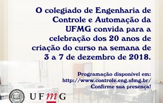 O ano de 2018 marca os 20 anos da implantação do Curso de Engenharia de Controle e Automação na UFMG. Confira abaixo a programação dos eventos de comemoração abaixo ou faça o download da programação.